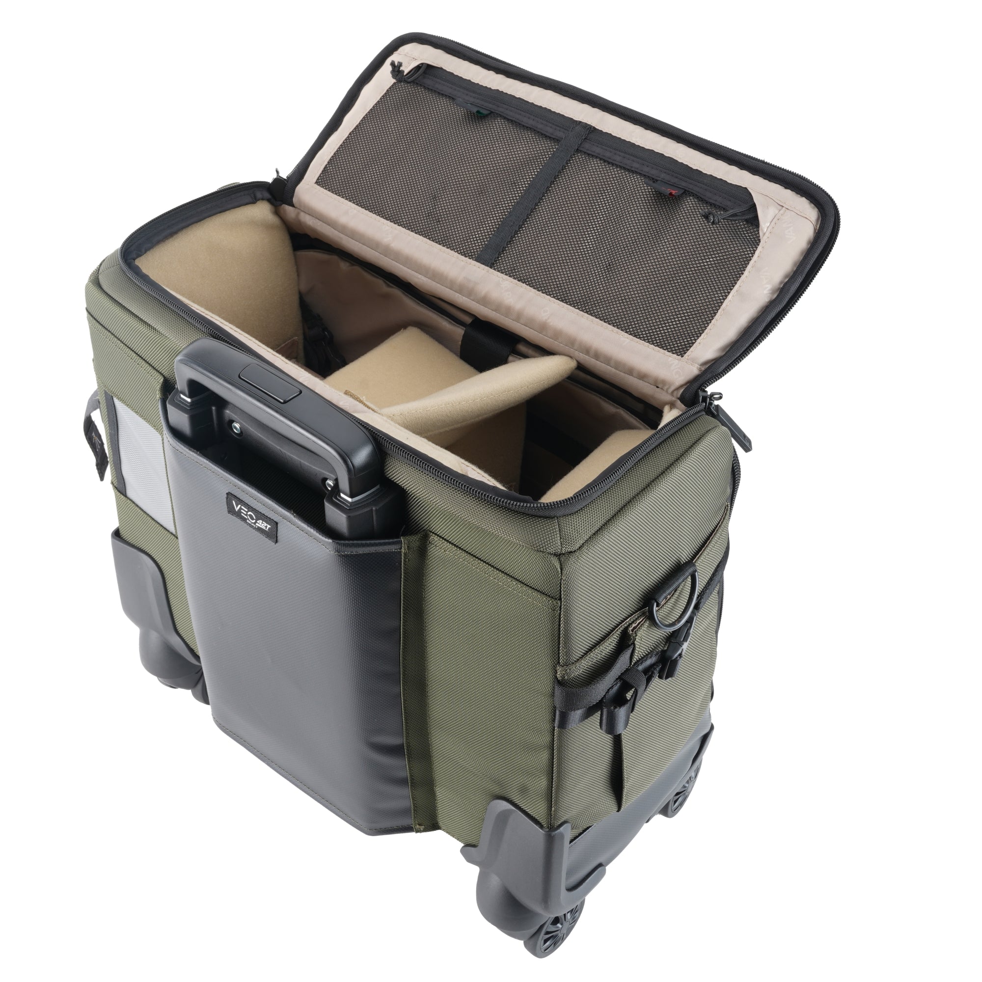 L'aspetto discreto del VEO SELECT 42T è come un normale bagaglio, quindi nessuno indovinerà mai che stai portando tutta la tua attrezzatura fotografica. All'interno di quella che si potrebbe chiamare "piccola custodia per attrezzatura fotografica" c'è uno scomparto spazioso e ben imbottito con molti divisori personalizzabili per contenere fotocamere DSLR 1/2, 3/4 obiettivi, un flash e accessori multipli; opzionalmente, un piccolo drone o attrezzatura video.