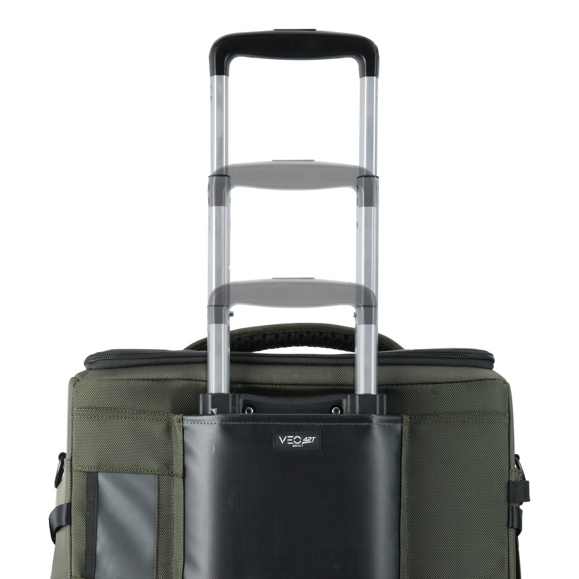Il VEO SELECT 42T dispone 4 ruote molto maneggevoli ed un manico a doppia barra. Una tracolla antiscivolo, ben imbottita, e una maniglia rinforzata offrono comfort per qualsiasi necessità durante il tuo viaggio. Grazie al materiale durevole e resistente all'acqua, manterrai la tua attrezzatura asciutta ed al sicuro da graffi sul fondo. Includiamo anche una copertura totale anti pioggia.